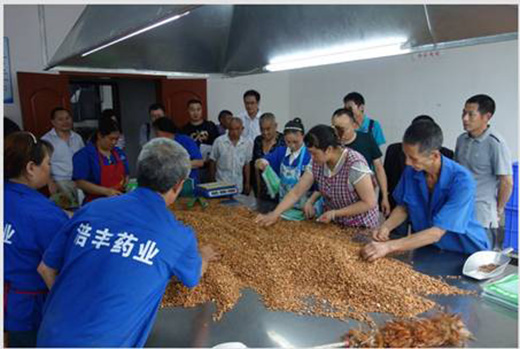 通過(guò)藥材種植、企業(yè)生產(chǎn)現(xiàn)場(chǎng)參觀,大家眼見(jiàn)為實(shí),堅(jiān)定了信心。在四川涪豐藥業(yè)有限公司的歡迎會(huì)暨中藥材種植培訓(xùn)會(huì)上,公司董事長(zhǎng)鄒盛忠承諾,企業(yè)義不容辭支持扶貧攻堅(jiān),堅(jiān)持免費(fèi)提供種苗、技術(shù),包產(chǎn)品回收;公司副總梁國(guó)才為種植戶詳細(xì)培訓(xùn)了梔子、白芷種植技術(shù);東興區(qū)委統(tǒng)戰(zhàn)部、平坦鎮(zhèn)領(lǐng)導(dǎo)強(qiáng)調(diào),村干部和村民代表回去后要加大宣傳,把中藥材種植產(chǎn)業(yè)抓好抓實(shí)抓出成效,帶動(dòng)更多農(nóng)戶增收致富。